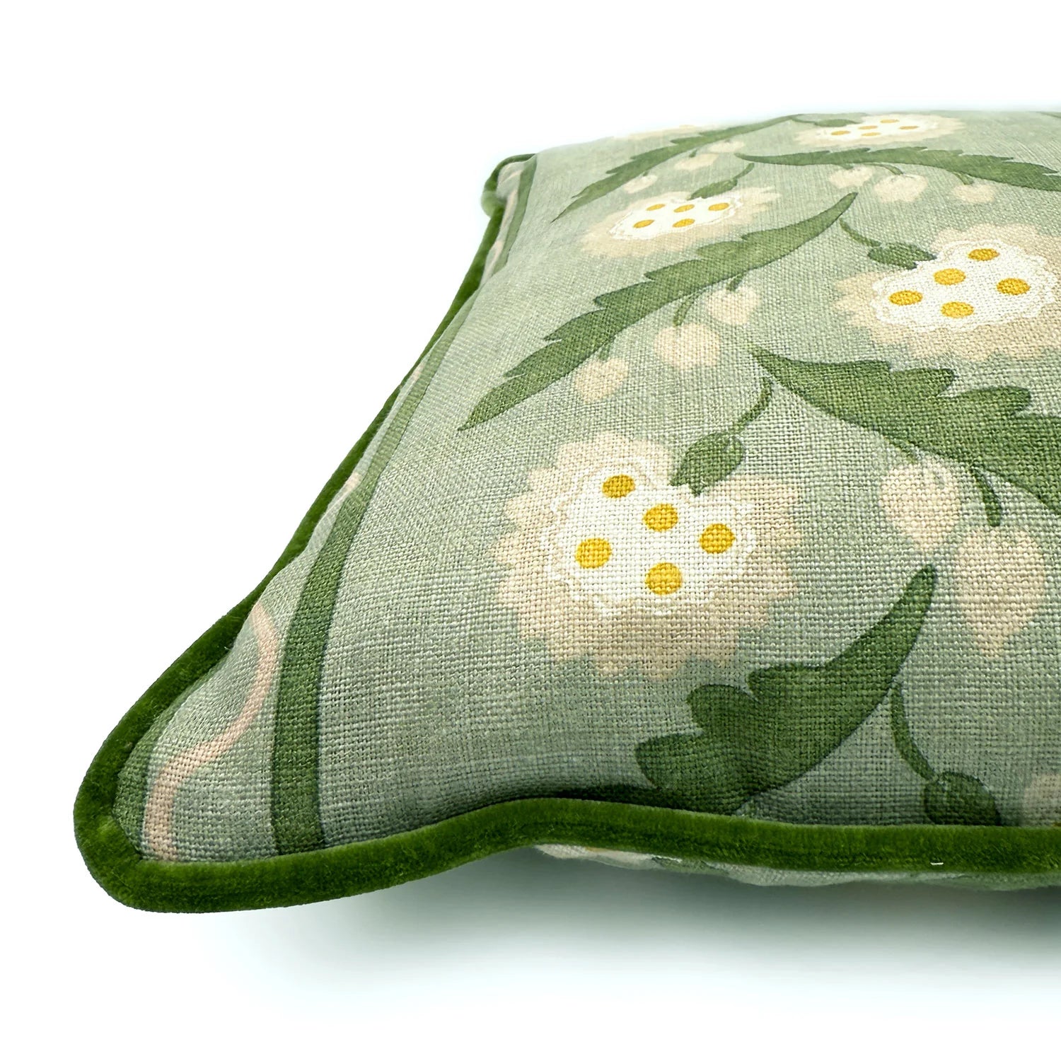 Polly Stripe Lakeside Cushion features a playful take on classic botanical design, with stylised dandelions framed by soft bands of colour and a charming wavy border. Printed on both sides of beautifully fine linen in a fresh palette, this cushion is finished with smart piping and a hidden zip - a confident, creative design that balances tradition with a touch of whimsy.