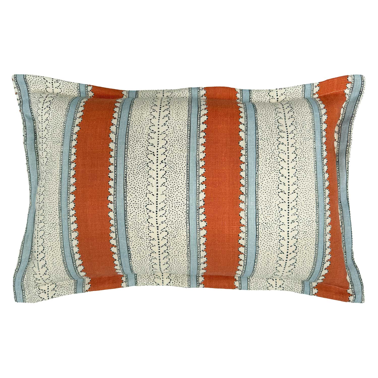Add an earthy pop of colour to your home with the Dimity Rust Cushion. This lovely, printed stripe on pure linen fabric features warm rust orange and cool blue bands with subtle dots and dashes and is printed on both the front and back to complete the look. Made from 100% linen with a refined Oxford edge and hidden zip, it’s a timeless piece for relaxed yet stylish interiors.
