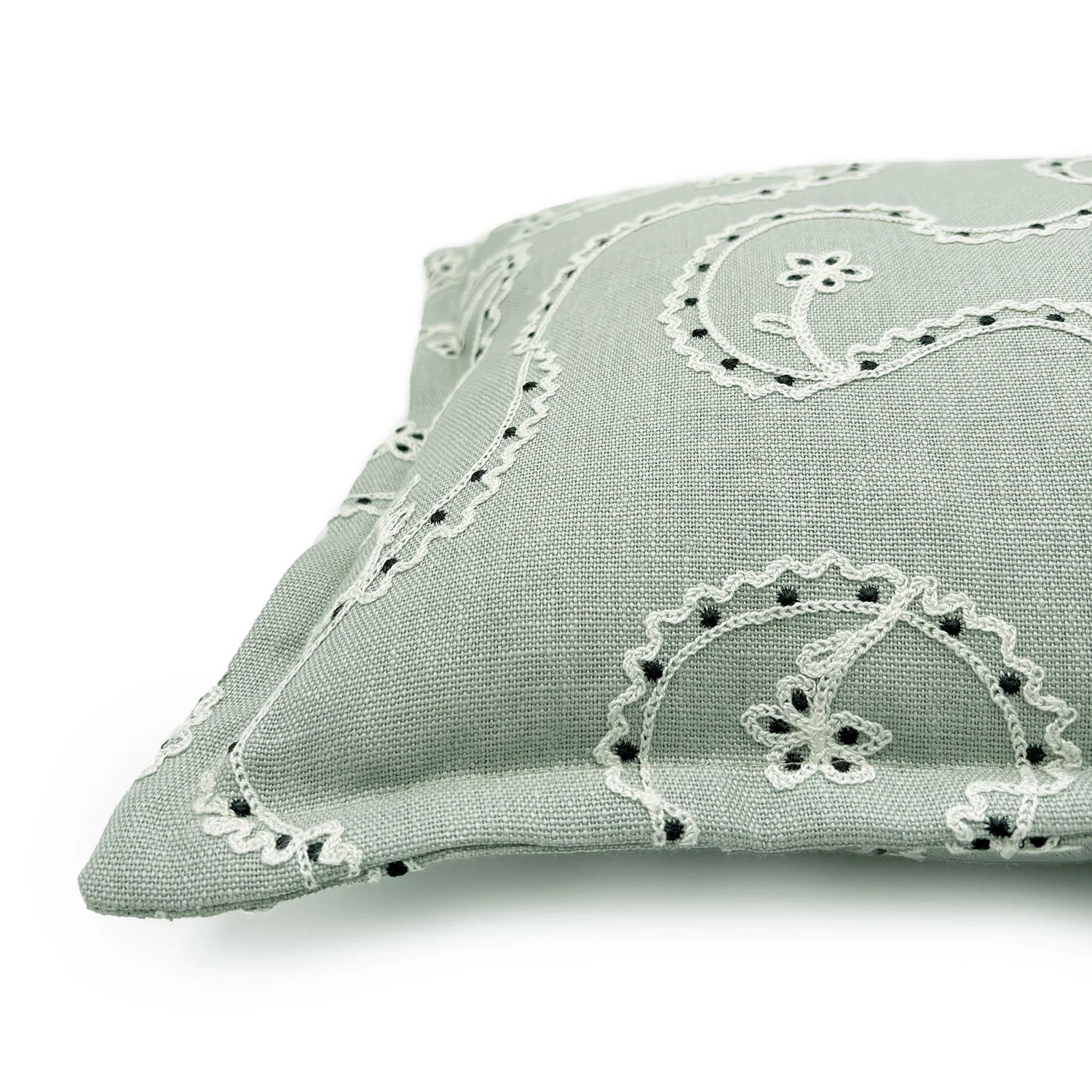 The Lysander Glen Embroidered Cushion from Linwood's Titania collection offers a fresh, uplifting interpretation of embroidery. Crafted on pure linen, its ribbon and floral motifs are chain-stitched in shades of tonal blue and off white. The pattern is shown on both sides and finished with a smart Oxford edge, this designer cushion evokes understated luxury.