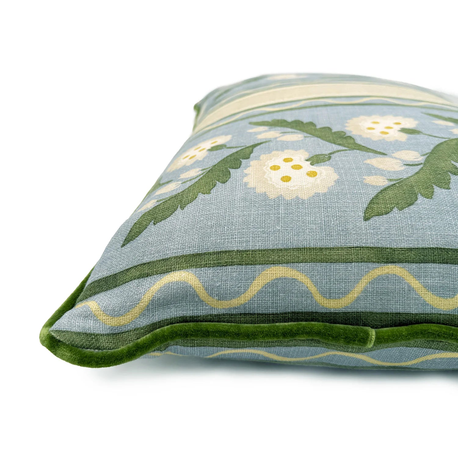 Polly Stripe Lakeside Cushion features a playful take on classic botanical design, with stylised dandelions framed by soft bands of colour and a charming wavy border. Printed on both sides of beautifully fine linen in a fresh palette, this cushion is finished with smart piping and a hidden zip - a confident, creative design that balances tradition with a touch of whimsy.