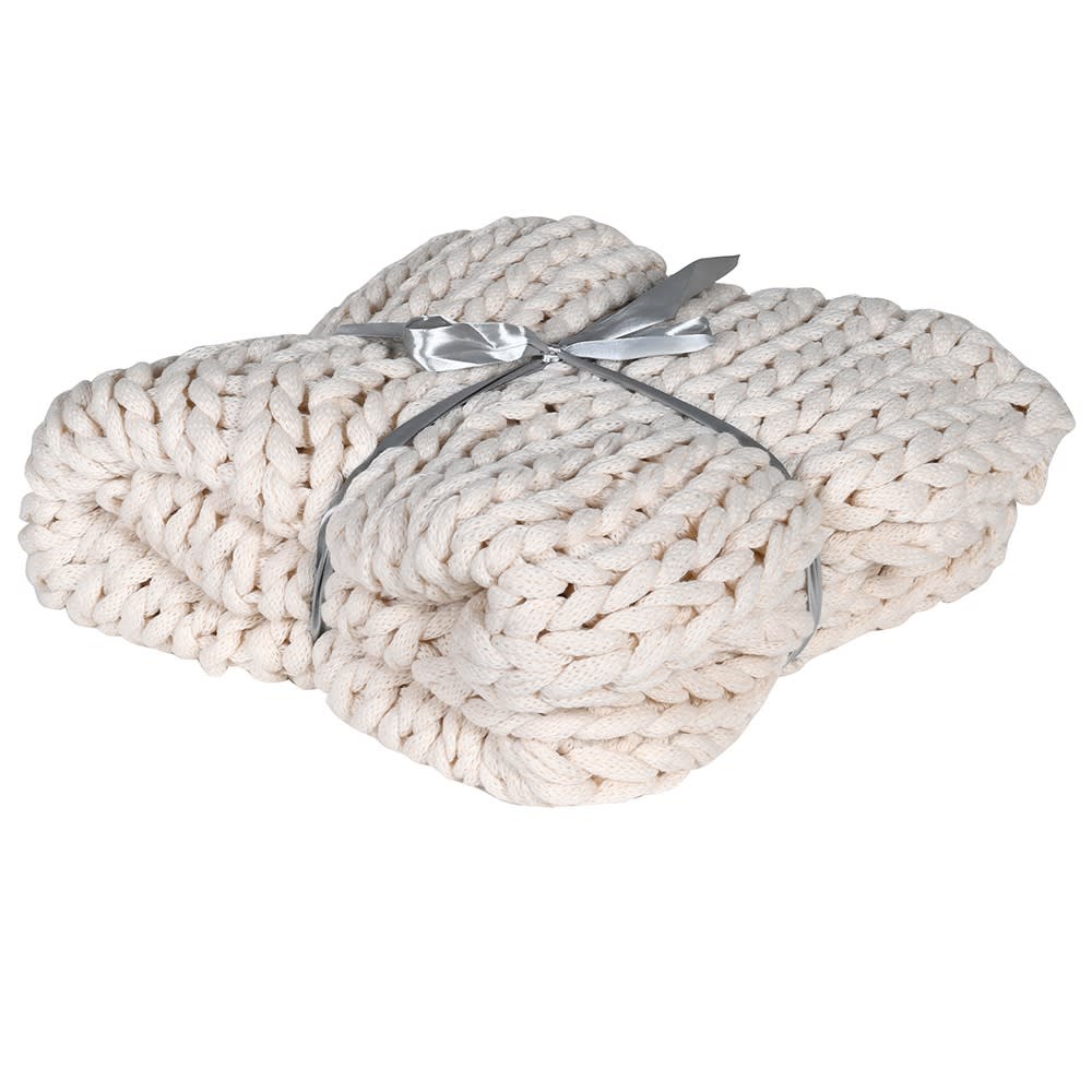 Cream Chunky Knit Blanket. A supersoft cosy throw to snuggle into on a cold night or as an extra layer of gorgeousness on your bed.
