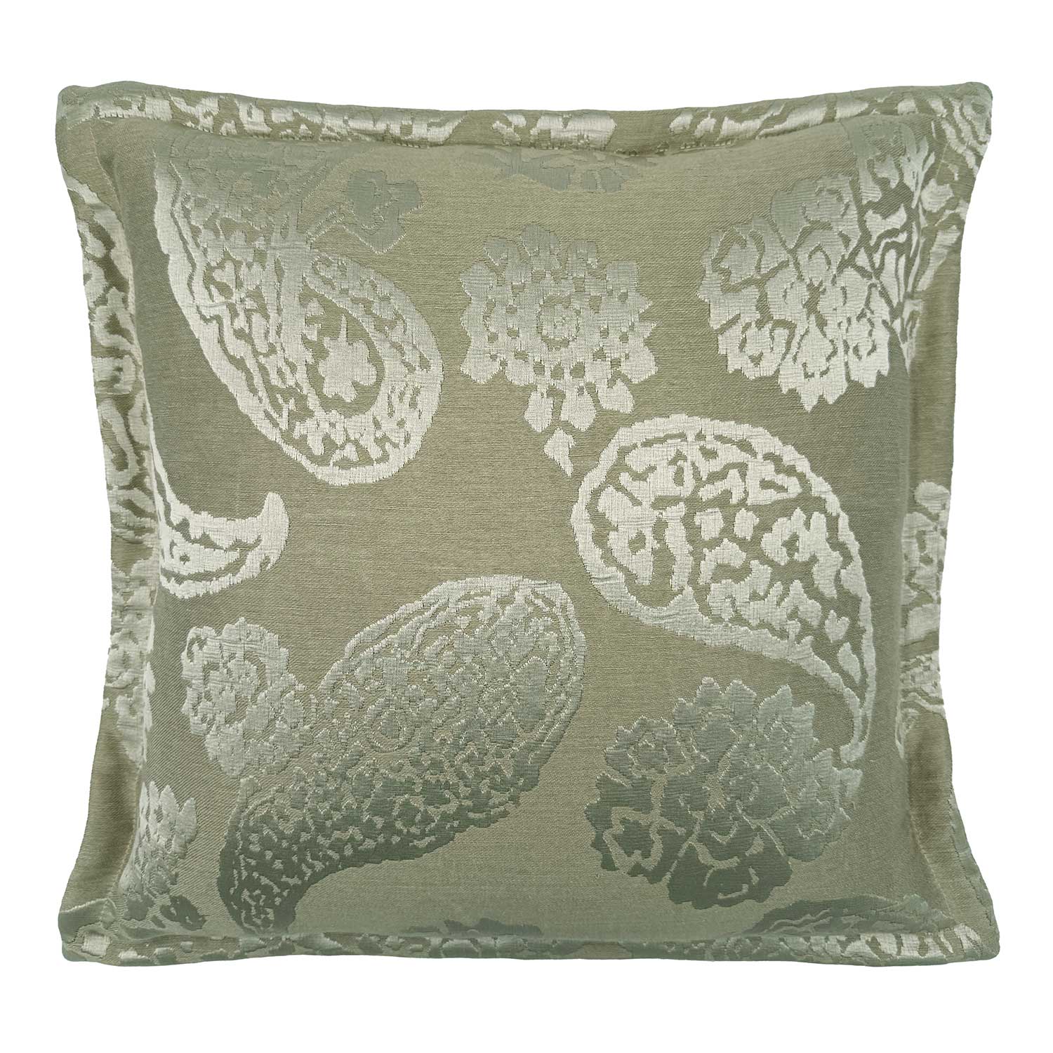 The Aurora Yorkstone Cushion, crafted from a luxurious silk-linen weave, features an elegant paisley and floral jacquard design in soft neutral tones. Woven pattern on both the front and back ensures a harmonious, fully finished look. Completed with a refined Oxford edge, it brings timeless sophistication and tailored charm to any interior.